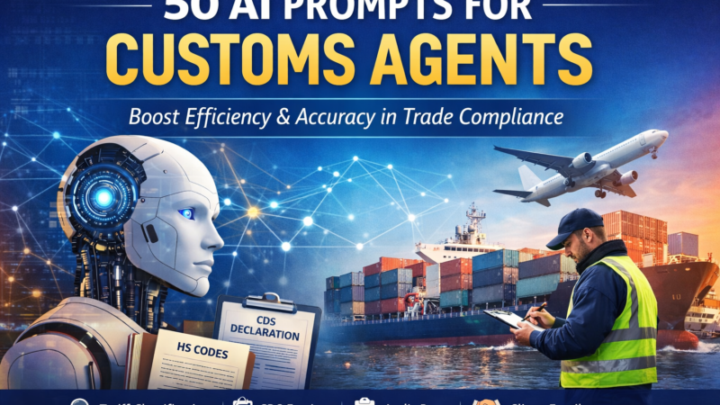 Introduction Artificial intelligence is increasingly being used across trade compliance, logistics, and customs operations. For customs agents, AI is not a replacement for professional judgement, but a powerful tool to improve efficiency, consistency, and internal knowledge sharing. This article provides 50 practical AI prompts designed specifically for customs agents, consultants, and compliance professionals. These prompts […]