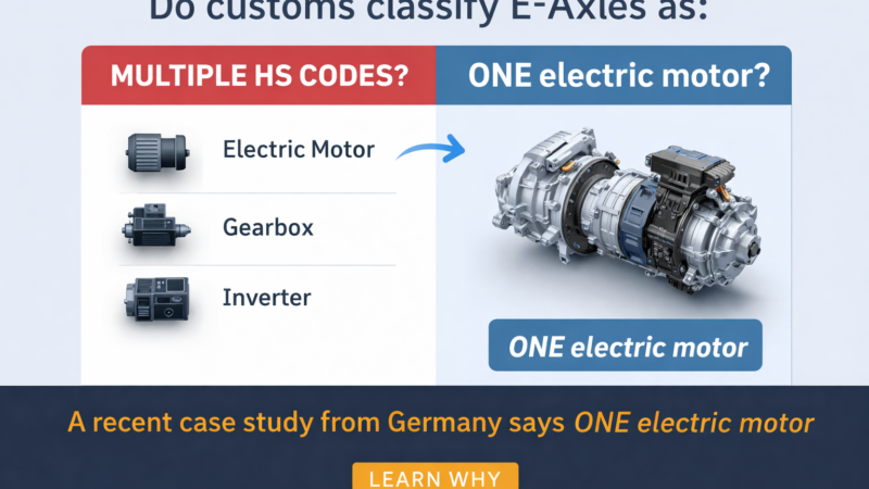 Electric vehicle components are becoming increasingly complex, and so is their tariff classification. This case study looks at how U.S. Customs classified integrated electric drive motor assemblies (E-Axles) imported from Germany, and what importers can learn from it. Overview of the Products The classification request covered two electric drive motor assemblies, both designed for vehicle […]