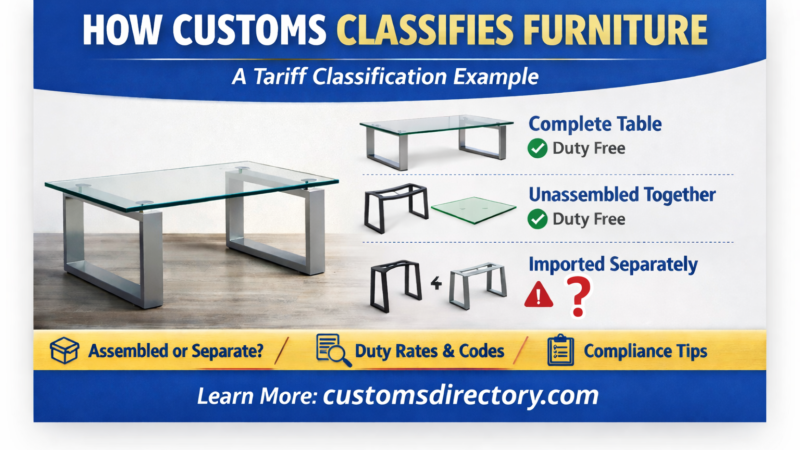 Understanding tariff classification can be challenging, especially when products are imported in different forms—assembled, unassembled, or as separate components. This real-world example involving a metal and glass cocktail table demonstrates how customs authorities approach classification and duty treatment under the Harmonized System. Product Overview(Customs Classifies Furniture) The item under review is a bridge cocktail table […]